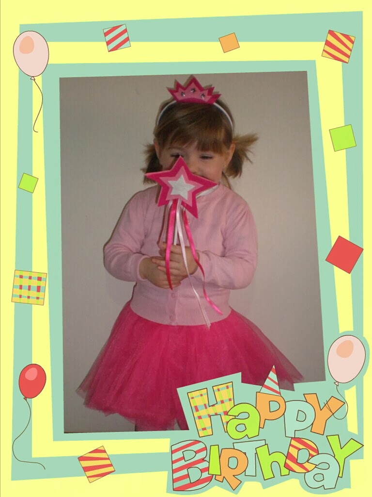 Le compré en los chinos un tutú fucsia, en un principio quería hacerlo pero me pilló el toro. Compre unas alitas y le hice una corona y una varita mágica siguiendo las intuiciones en esta web que me encanta, Pequeocio.