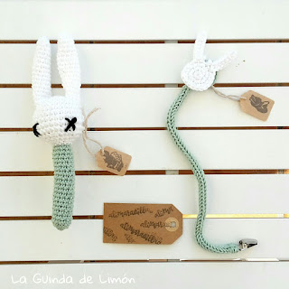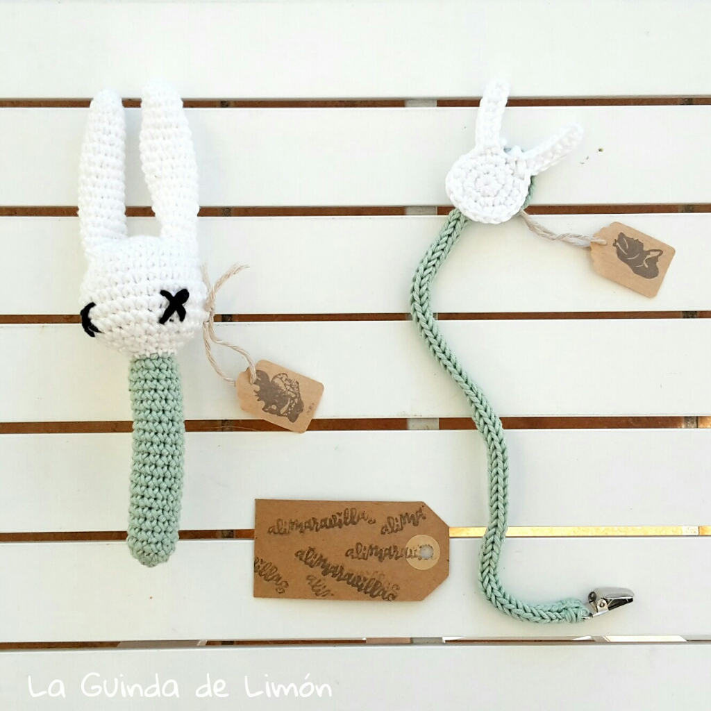 El Conejo Blanco es un conjunto de chupetero y sonajero hecho a mano por Alimaravillas. Ali empezó a hacer crochet y ya no pudo parar. Hace todas sus creaciones con material de calidad, 100% algodón.