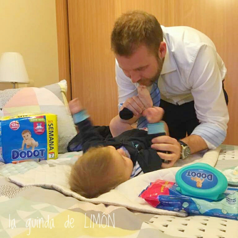 En la nuestra el papá cambia el pañal hablándole, haciéndole pedorretas o cosquillas para que nuestro limoncito se ría.