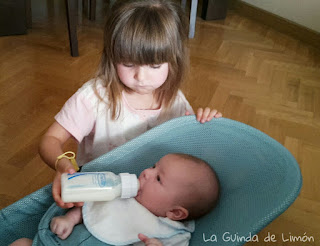 Lo mejor es ver cómo mi hija quiere a su hermano, sin duda, cada día tengo más claro, que el mejor regalo que unos padres pueden dar a sus hijos es, además de pasar tiempo con ellos, un hermano. Daniela no para de besarle, de acariciarle, de mimarle, se implica en todo lo que una niña de 4 años puede y quiere implicarse y le encanta su papel de hermana mayor.