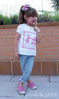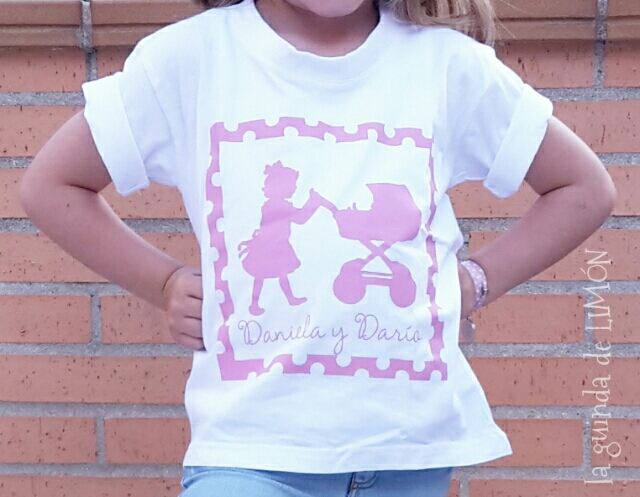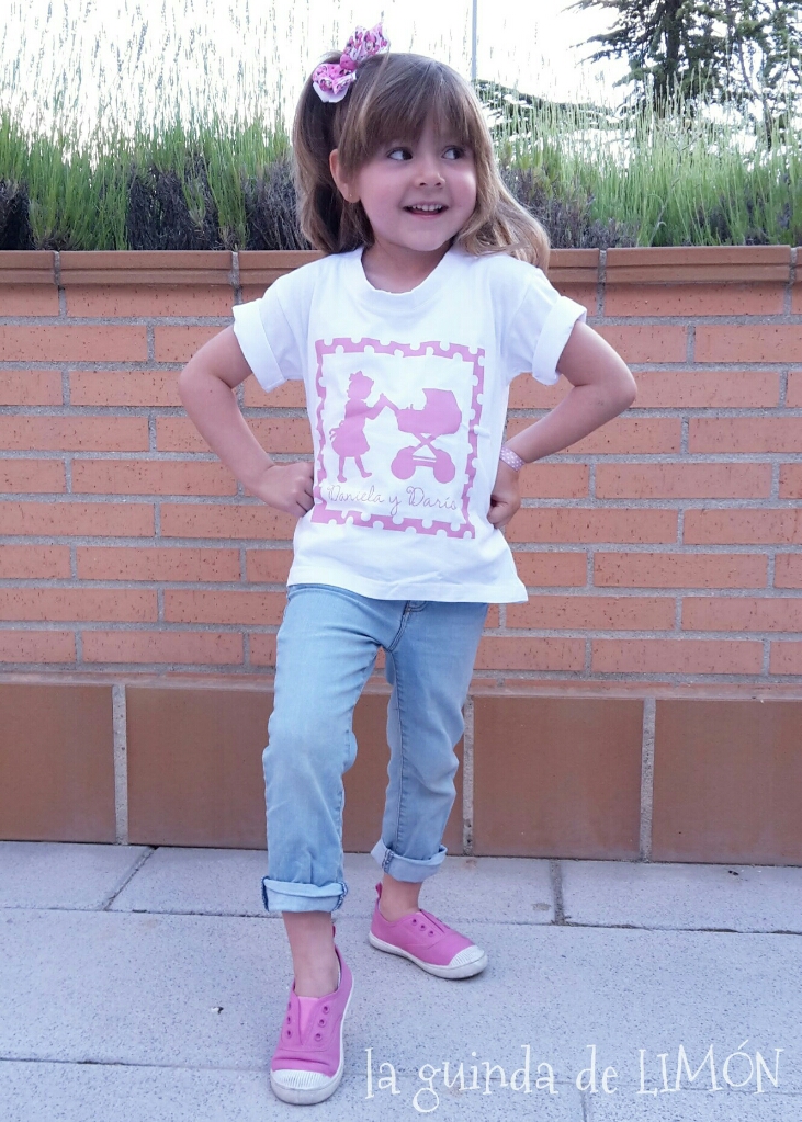 Ella estaba encantada de poder llevar una camiseta en la que salían su hermanito y ella y además que fuera de color rosa, por supuesto.