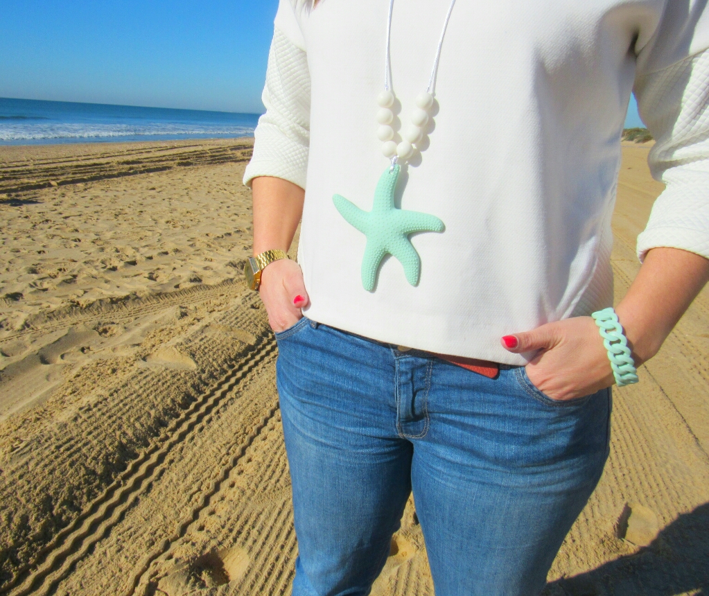 Yo le he puesto la Guinda a este look con el collar STELLE MINT DELUXE y la pulsera mordedor CHLOE MINT DE LUXE, que me evoca al verano, la playa y el disfrute.